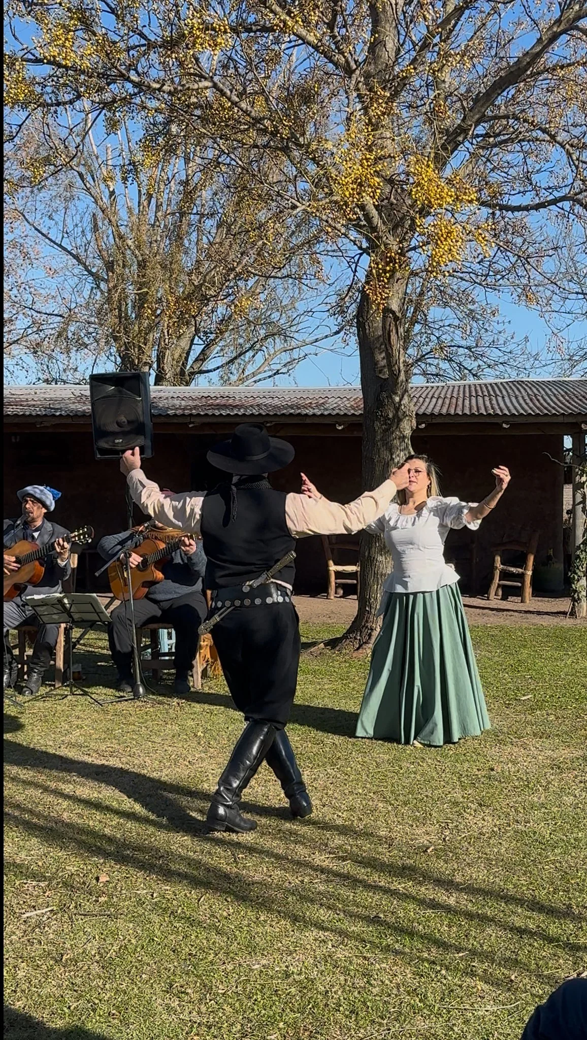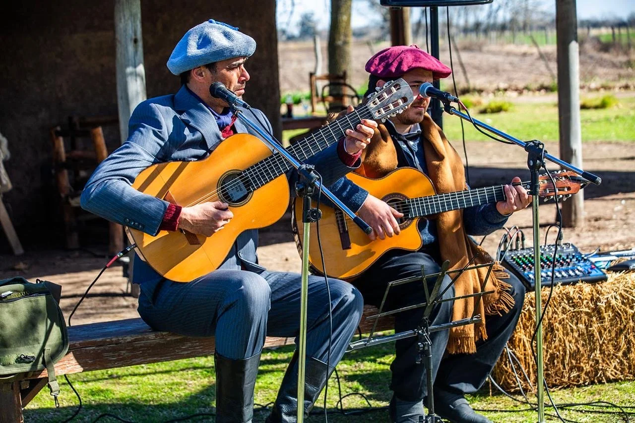 Auténtico día de campo: Cabalgata o paseo en carruaje, asado tradicional, música en vivo, baile folclórico y destrezas gauchas que reflejan la esencia de nuestras tradiciones.